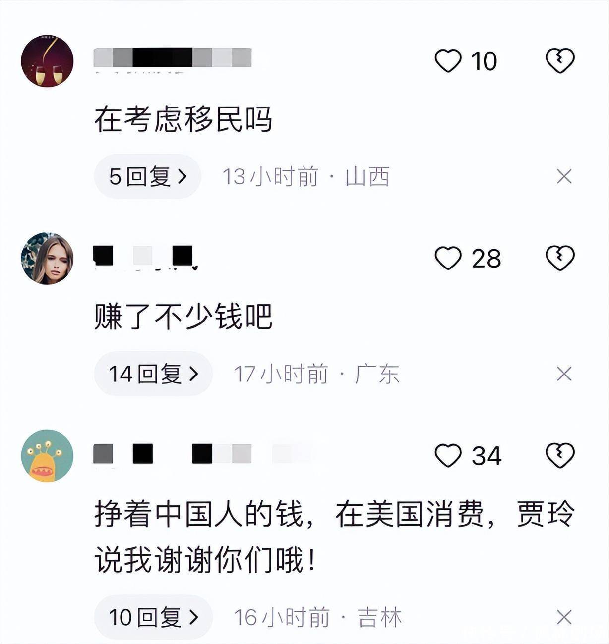好多网友齐讪笑她赚了中国东谈主的钱,在好意思国进行铺张,致使怀疑她是要准备侨民了。