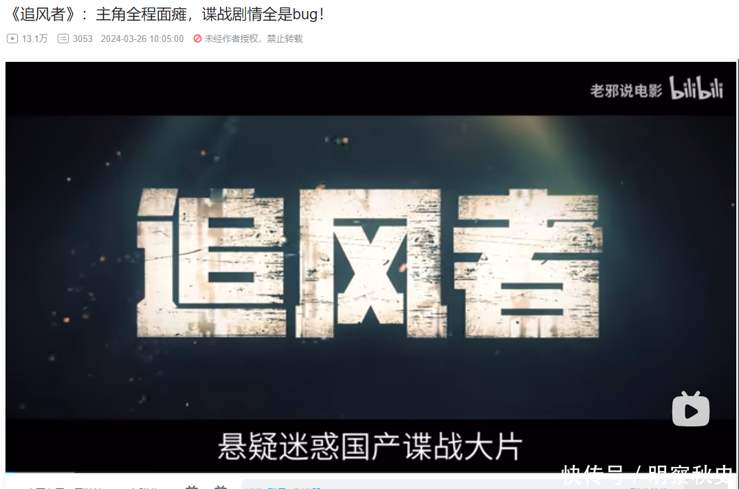 但在这一时辰,一位领有百万粉丝的著名影视类up主老邪说电影发布了一条吐槽该剧的视频,